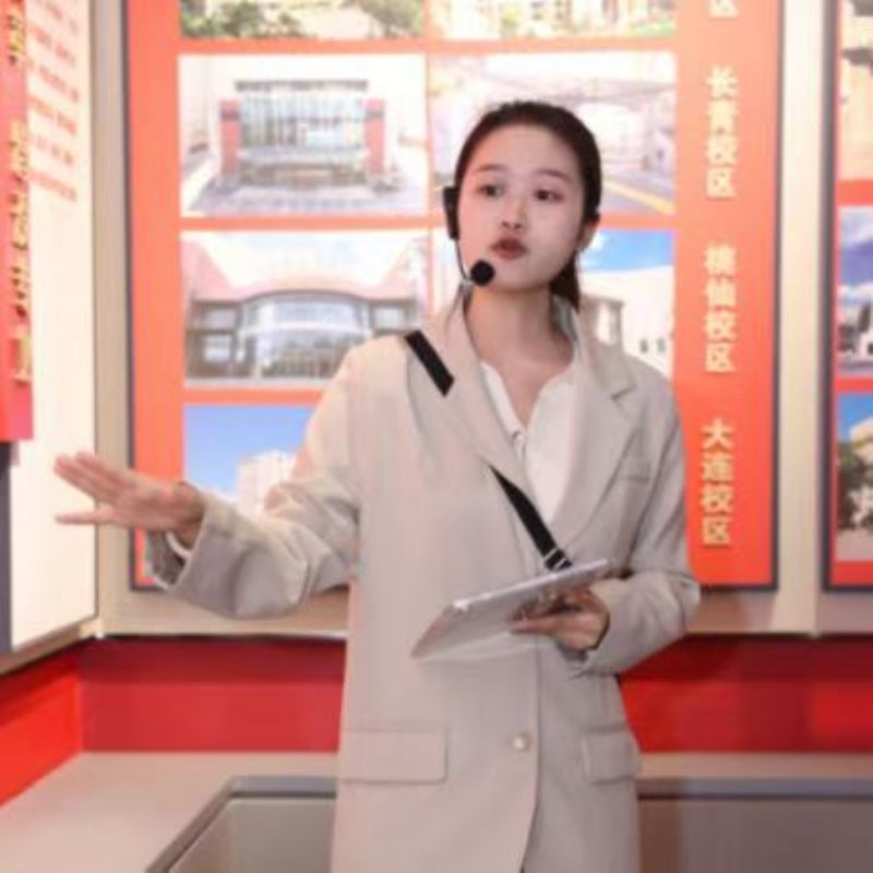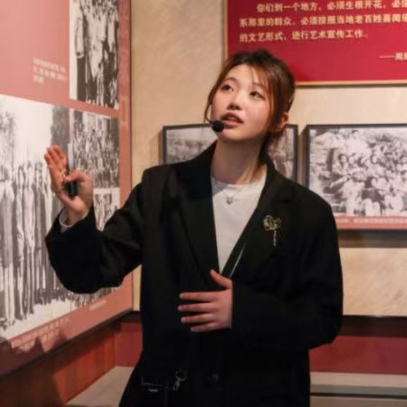 四位学生讲解员们以清朗的声音、舒展的仪态、真诚的目光,全程为听众脱稿讲解导览,带领参观者回顾我校辉煌校史。历史的厚重与青春的朝气在他们声情并茂的叙述中交融共生。讲解员们不仅是故事的转述者,更是文化基因的传承者。当年轻的声音成为校史传播的载体,这既是学子对母校最深情的告白,也是将悠久校史转化为青春力量的生动实践。