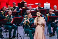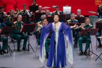 音乐会在俄罗斯功勋艺术家季莫费·马亚金少将指挥的柴可夫斯基《第四交响曲》终章的磅礴声浪中启幕。这部“命运抗争”的史诗,令观众仿佛置身硝烟弥漫的战场。歌曲《芦花》,演唱者以空灵的嗓音勾勒江南水韵,与俄罗斯民歌《毡靴》的“冬日幽默”形成诗意对话。维吾尔民歌《一杯美酒》热情奔放;巴拉莱卡琴奏响的《节日庆典》再现了斯拉夫民间婚礼的狂欢场景;歌曲《在希望的田野上》饱含对美好生活的赞美;歌曲《春天的芭蕾》《俄罗斯上空飞行》,演唱者以高超的演唱技巧引发观众赞叹;《五月华尔兹》经典的旋律将观众回到1945年那个鲜花漫天的胜利之春,《莫斯科郊外的晚上》《喀秋莎》熟悉的旋律则将全场气氛推向高潮,观众长时间起立鼓掌,致敬这场跨越80载的音乐对话。