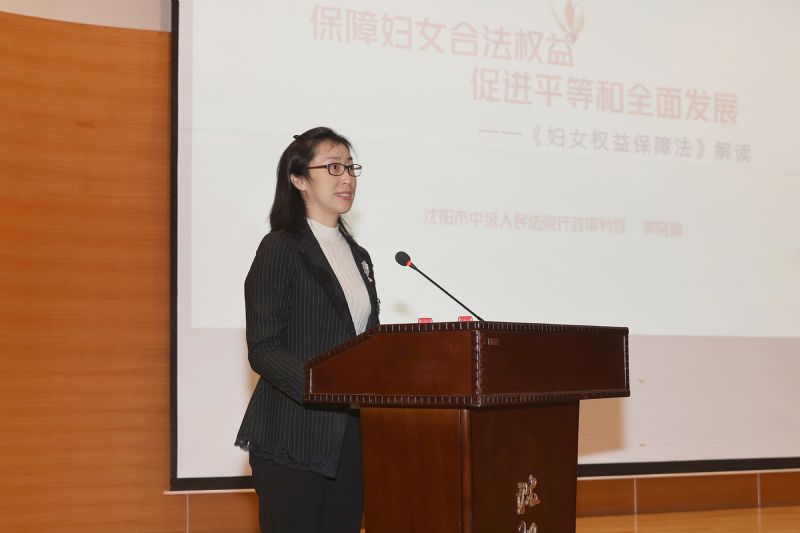 此次讲座特别邀请到沈阳市中级人民法院行政庭庭长、二级高级法官、辽宁省审判业务专家、北京大学心理学博士郭晓娟为大家授课。郭晓娟长期研究女性心理发展,曾从事少年及家事审判近十年,有着丰富的理论与实践经验。郭晓娟从《妇女权益保障法》出台的历史进程的角度切入,围绕人身和人格权益中的民法问题、财产权益中的民法问题、婚姻家庭权益中的民法问题三个方面,用具体事例以案释法、以法论事,对《妇女权益保障法》进行深入浅出的解读。讲座主题明晰、内容丰富、重点突出、逻辑严谨、生动鲜活,具有很强的思想性、理论性和指导性,对帮助大家进一步贯彻落实习近平法治思想,做好新修订的妇女权益保障法的学习宣传和贯彻实施工作具有重要意义。