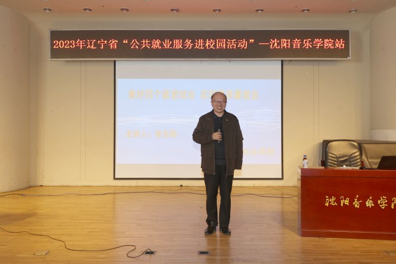 为提升就业创业服务质量,增强毕业生求职能力,按照《辽宁省“春暖辽沈•援企护航”保用工促就业助振兴行动(2.0版)》要求,3月28日,2023年辽宁省“公共就业服务进校园活动(沈阳音乐学院站)”在我院举行。省大学生就业创业中心就业创业指导部部长苗旭,国内著名创新创业教育专家、博士生导师刘敬东,沈阳理工大学硕士生导师张东阳,辽宁山水清环保科技有限公司董事长郭洪君,我院就业指导中心负责同志及民族器乐系、钢琴系、舞蹈学院、大连分院2023届毕业生近200人参加活动。