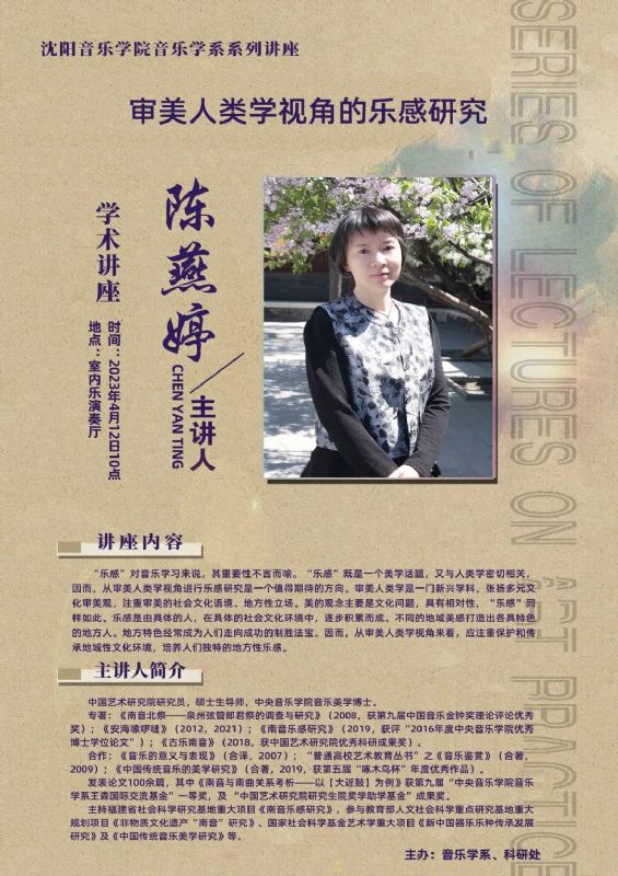 讲座预告|陈燕婷《审美人类学视角的乐感研究》