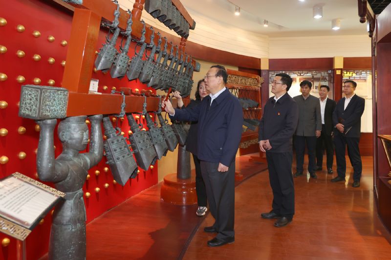 省政协副主席、民进省委会主委姜军一行参观我院民族乐器陈列馆