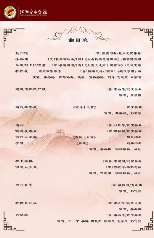 演出地点:沈阳音乐学院第二教学楼424多功能厅