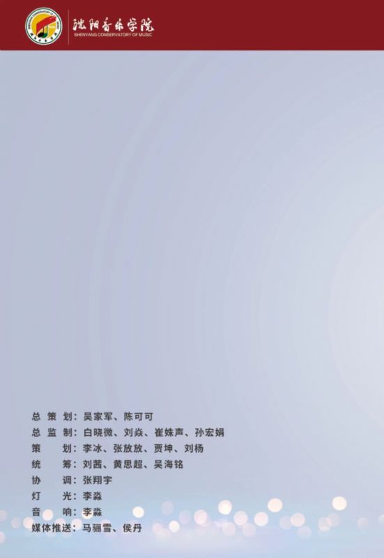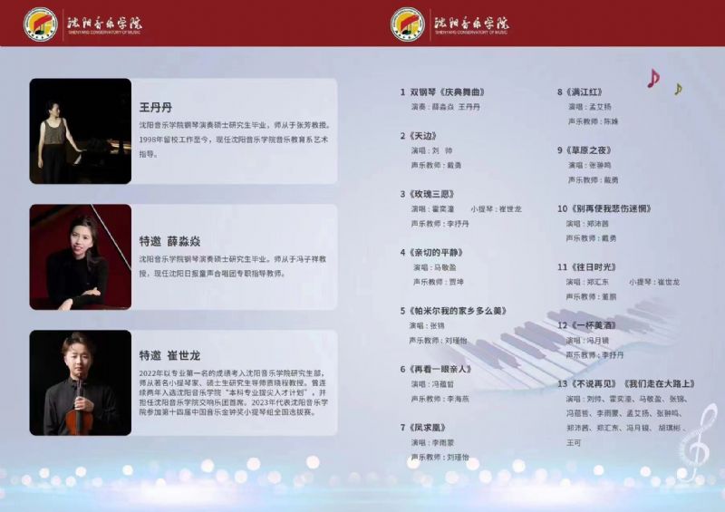 演出地点:沈阳音乐学院长青校区第二教学楼15楼演奏厅