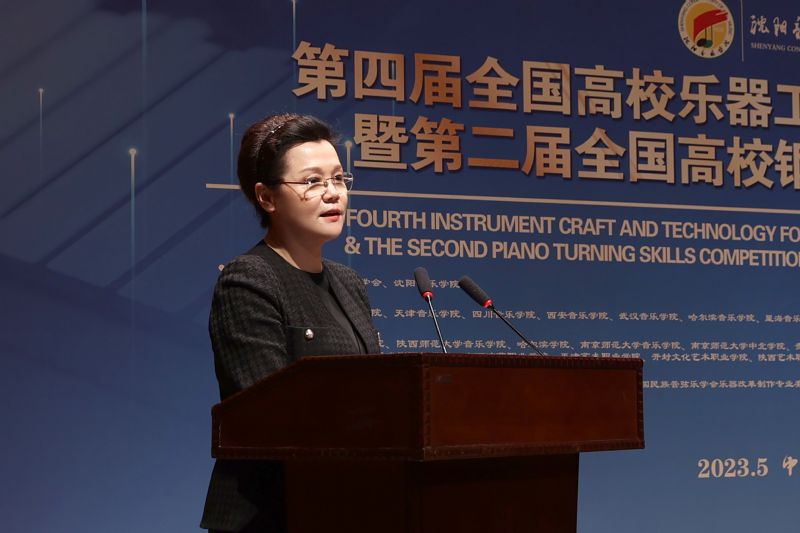 开幕式上,冯志莲代表学院致辞,向参加本次论坛和竞赛的专家、学者和比赛选手表示热烈欢迎。她指出,在80余年的办学历程中,我院为党和国家培养了数以万计的艺术人才,创作了大量极富社会影响力的音乐作品。作为在全国音乐院校中建设最早的专业,我院乐器工艺专业在多年发展中积累了一定的专业优势。在国家新文科建设和高中等教育供给侧结构性改革的大背景下,我院科学规划学科专业布局,形成了以“教学—科研—实践”有机结合、专业教育与技能教育占比科学、人才培养层次设计合理的教育教学改革创新体系,同时积极开展校际合作、校企合作与专业实践基地建设,建立了多个教学实践基地,并且依托辽宁乐器产业的地域优势组建了辽宁省乐器产业校企联盟,大力推进产教融合,推进学科建设创新发展。冯志莲表示,希望通过本次论坛和竞赛进一步加强各兄弟院校的合作交流,整合并发挥全国高校的专业优势和专家优势,集思广益、开拓思路,在音乐科技专业与学科建设方面取得更多成果。