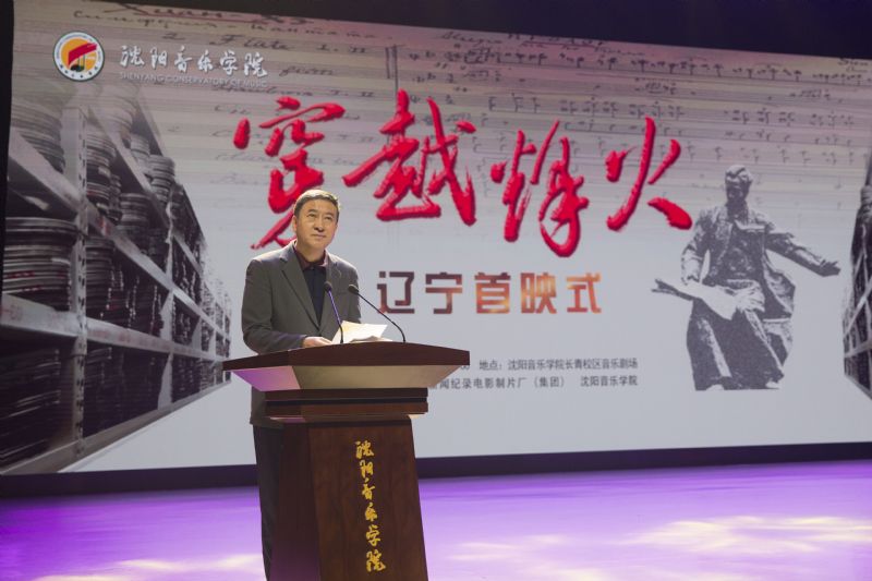 我院党委书记赵恒心致辞。他讲到,6月13日是冼星海同志诞辰118年纪念日,作为延安鲁艺的后裔,同时也是纪录电影《穿越烽火》的重要取景地,今天在我院举行辽宁首映式,也是以一种特殊方式向伟大的“人民音乐家”致敬。85年来,鲁艺精神始终是沈音从历史走向未来的思想根基和强大底气。未来,我院将一以贯之秉承毛泽东亲笔题写的“紧张、严肃、刻苦、虚心”的校训精神,坚持为党育人、为国育才,坚持文艺为人民服务、为社会主义服务,努力培养德智体美劳全面发展的社会主义建设者和接班人。