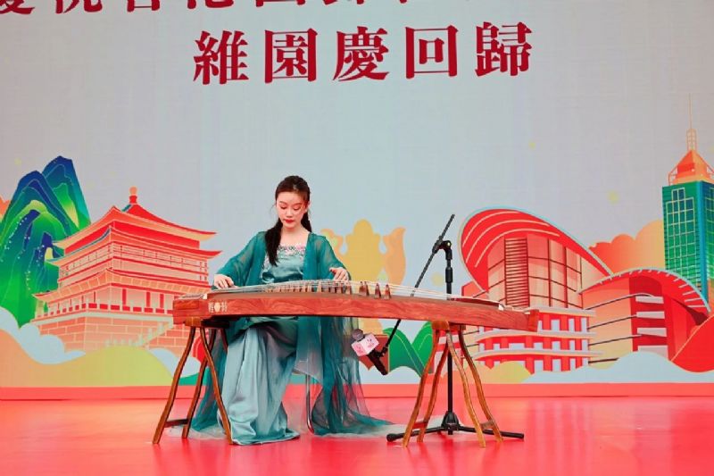 演出中,我院民族声乐系教师李优、李超表演了男女声二重唱《天天月圆》,民族器乐系教师贾晓莉表演了古筝独奏《丰收锣鼓》,民族器乐系教师王琳演奏了二胡曲《战马奔腾》,音乐教育学院教师贾坤演唱了歌曲《漫步街上》,李优、李超还分别演唱了歌曲《在水一方》《乌苏里船歌》,王琳、贾晓莉联袂表演了二胡与古筝二重奏《山丹丹开花红艳艳》。演出最后,李优、李超、贾坤为观众献上歌曲联唱《东方之珠》《祝福》,为祖国和香港送上美好祝福,引起现场观众强烈共鸣。