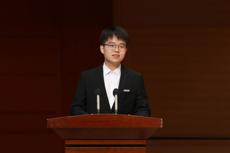 作曲系2020级本科生李传毅代表全体学生发言。他表示,作为新时代的沈音学子,要时刻牢记党的教诲,把艺术理想熔铸在党和人民事业中,让青春韶华与家国情怀同频共振,在强国复兴的新征程上,贡献沈音学子的力量。