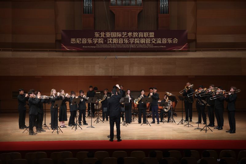 10月13日,“悉尼音乐学院•沈阳音乐学院铜管交流音乐会”在我院精彩上演。此次音乐会是我院发起并主导的东北亚国际艺术教育联盟成立后的系列音乐会之一。悉尼音乐学院副院长兼教育副院长、著名作曲家马修•辛森,中国音乐及民族音乐学研究生博士生导师及中国乐团总监刘璐,钢琴教授保罗•里卡德•福特,我院副院长冯志莲(主持行政工作),国际交流合作处、管弦系负责人和我院师生共同观看音乐会。音乐会由戏剧影视学院教师王丹主持。