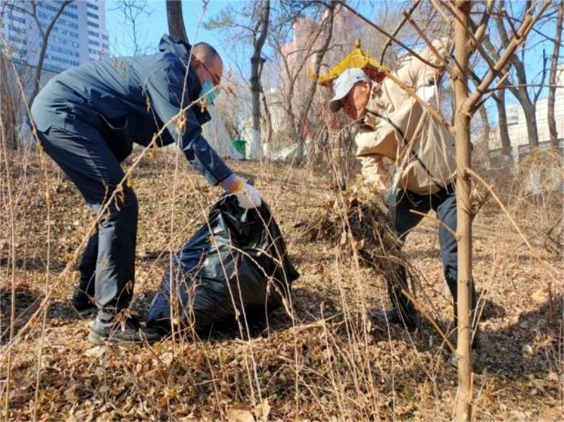 当天上午,机关党委、后勤基建处党总支的党员、干部、群众按照活动安排,分组划片、集体联动,对三好、长青和桃仙校区的水池假山、凉亭树林、学生公寓、水源地、商园等周边绿地内的枯枝、落叶等垃圾进行集中清扫。活动中,大家不怕脏、不怕累,全身心投入到清扫工作中,有的挥舞扫把清扫,有的拿起铁锨装袋,有的忙着清运垃圾……一片热火朝天的繁忙景象。