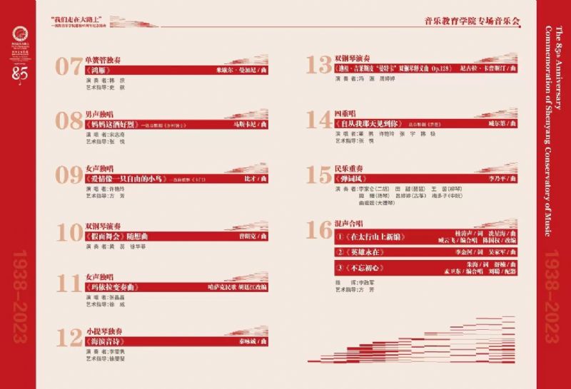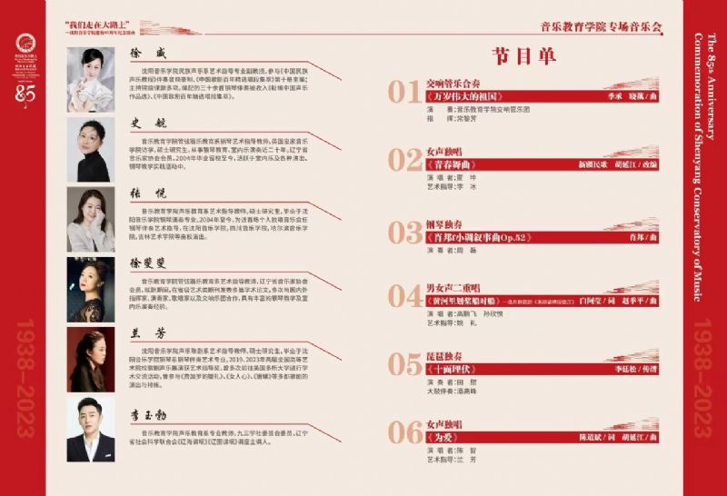 音乐会名称:“我们走在大路上”—沈阳音乐学院建校85周年纪念活动——音乐教育学院专场音乐会