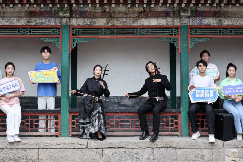 在保极宫、后花园、颐和殿,民族器乐系的同学们带来了具有浓厚中国风色彩的视听盛宴。二胡重奏《兰亭序》通过对书法意境和情感的借鉴融合,表达人生思考和情感体验;二胡曲《战马奔腾》表现了守卫边疆的骑兵战士英勇顽强、一往无前战斗精神;琵琶曲《早春》采用江南丝竹与评弹音乐的元素,以琵琶擅长的江南语言,表现万物复苏的早春景致;琵琶曲《欢沁》以欢快的旋律令人耳目一新、心旷神怡。作曲家关大洲为央视《国家宝藏》节目量身打造的开场音乐《象王行》,刚柔并济、大气磅礴,是当今具有代表性的国风作品之一,民乐合奏《象王行》令观众感受到民族音乐的艺术魅力。