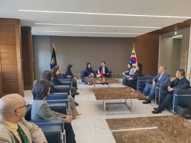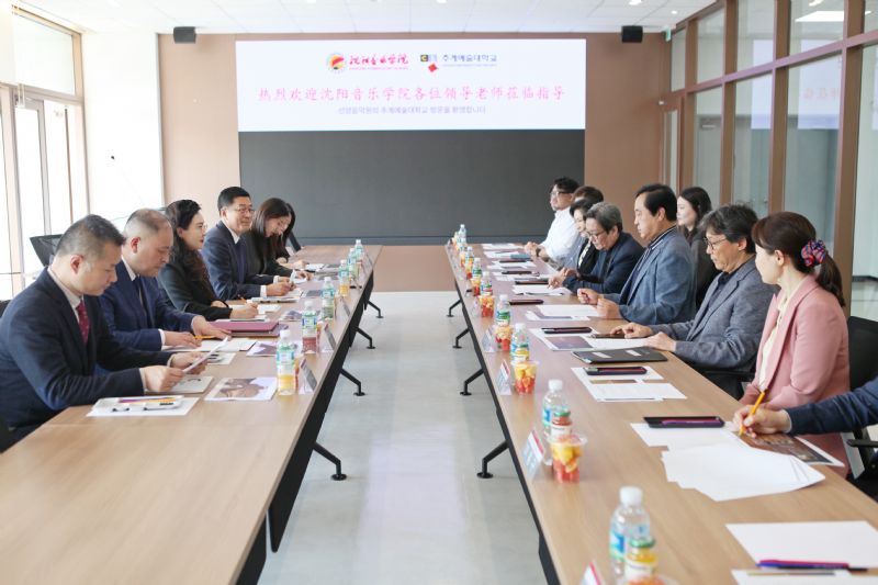 赵恒心一行与韩国秋溪艺术大学校长任常爀、副校长全星海及国际交流院院长陈贵玉等举行校际会谈