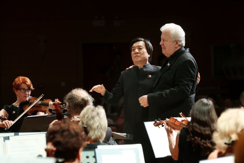 在俄罗斯功勋艺术家伊尔马尔·拉平什与乐团指挥马克西姆·卡查洛夫执棒指挥下,伊尔库茨克州爱乐乐团先后为观众带来《C大调波洛涅兹舞曲》op.49、《d小调小提琴协奏曲》两首经典的俄罗斯乐曲。起伏有致的乐曲旋律、激烈炽热的情绪表达,博得全场观众阵阵掌声与喝彩声。我院青年教师李优、李超与伊尔库茨克州爱乐乐团的艺术家共同演绎了歌曲《我爱你中国》,恢弘壮阔的交响乐与柔美深情的歌声交织融合,不仅将海外游子对祖国的真挚热爱展现得淋漓尽致,更表达了中俄两国人民相知相亲、世代友好的特殊情谊。
