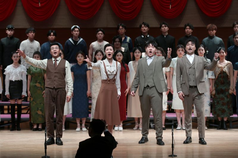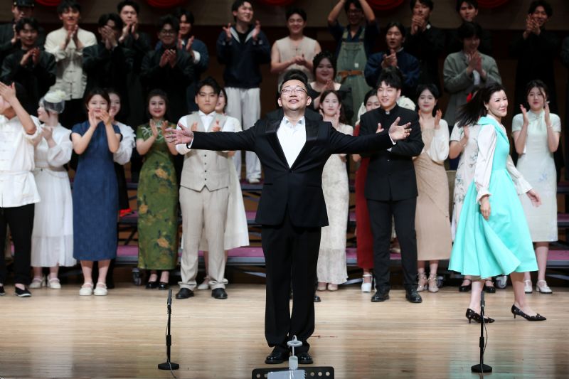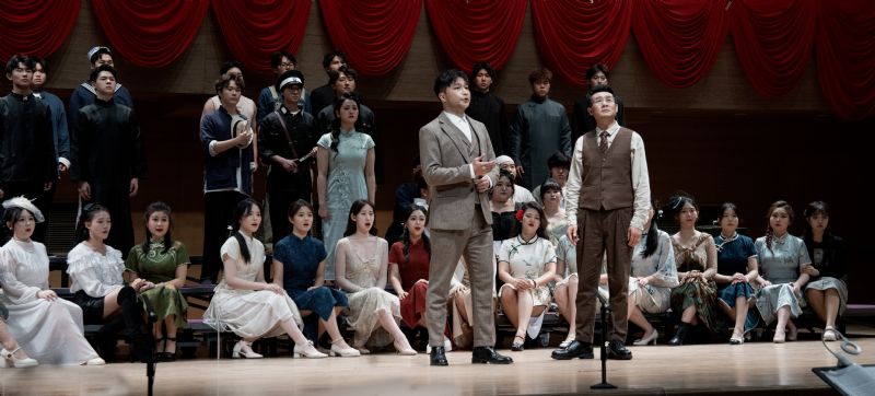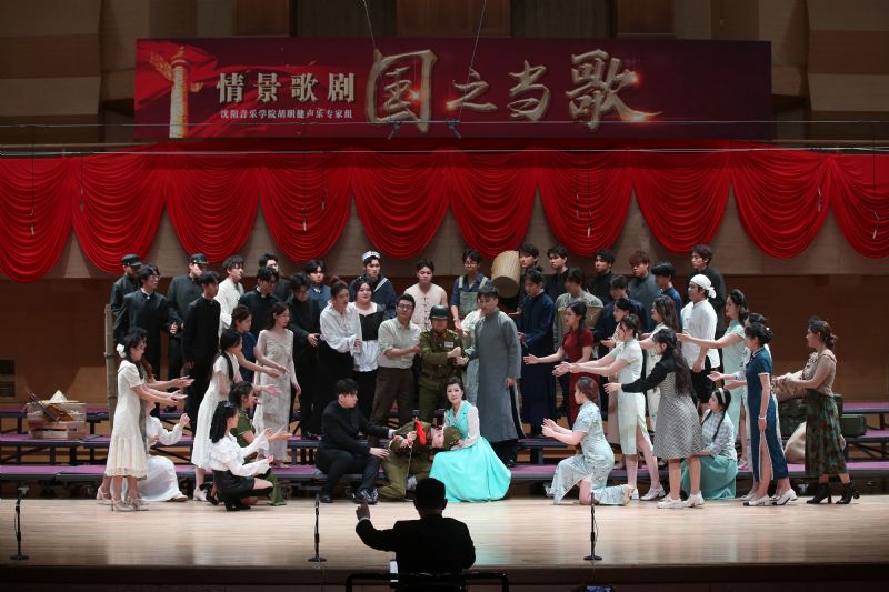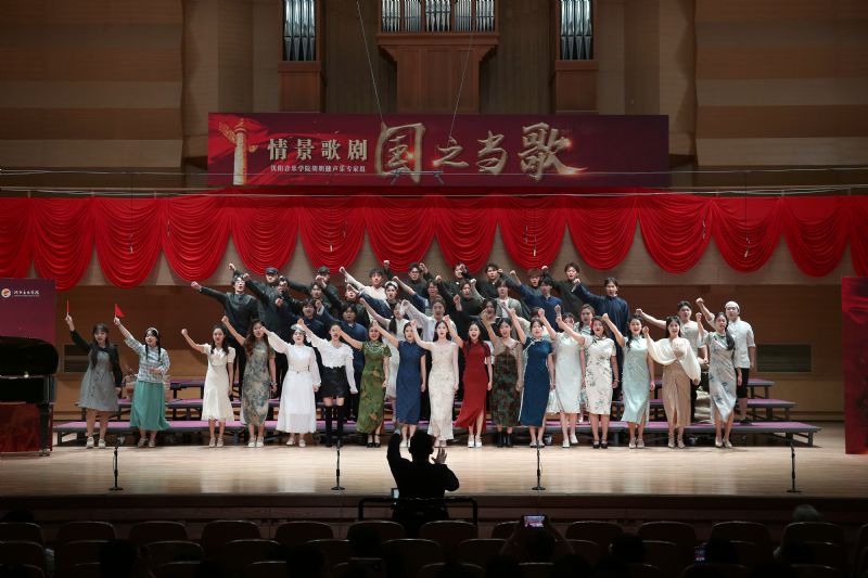歌剧《国之当歌》以“九一八”事件爆发为背景,讲述了田汉、聂耳共同创作《义勇军进行曲》的故事,歌颂了“天下兴亡、匹夫有责”的家国情怀和“用我们的血肉筑成我们新的长城”的大无畏精神。演出过程中,参演师生深情演绎了《义勇军进行曲》《天才的陨落》等20余首经典曲目,用歌声扣动观众的心弦,让人不禁回想起中国人民所经历的苦难,更深切地感受到中华民族不屈的反抗精神。