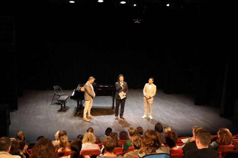 法国当地时间7月4日,由法国特朗布莱音乐学院主办的中法建交60周年音乐交流会在巴黎奥登音乐厅举行。我院代表团应邀参加音乐交流会。法国特朗布莱市文化事务领事安东尼·雷吉斯、法国特朗布莱音乐学院院长陈昱、我院声乐歌剧系主任张策致辞并与众多法国观众共同观看音乐会。