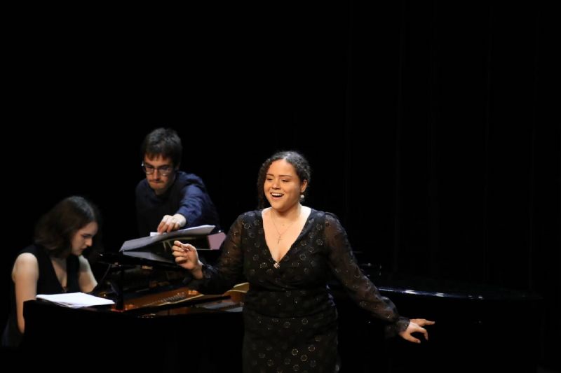 音乐会上,我院声乐歌剧系研究生孟庆鑫、张智超,戏剧影视学院本科生刘艺淳与巴黎国家高等音乐学院的三位学生同台献艺,演唱了多首风格各异的经典声乐作品。学生们凭借丰富的舞台表现力和扎实的演唱功底,赢得现场观众阵阵掌声和喝彩声。