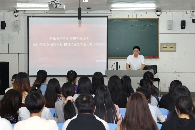 田彦以《弘扬鲁艺精神 展现青春作为——做让党放心、爱国奉献、担当民族复兴重任的时代新人》为题,从“诞生——从战火中走来、为人民放歌”“传承——赓续红色血脉、担当文化使命”“致远——践行青春誓言、书写青春答卷”三个方面,作了生动讲解,谈思想、讲体会、明方向、话未来,带领师生感悟校史底蕴,厚植爱国情怀,增强责任担当。