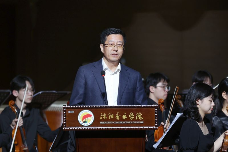 我院党委书记赵恒心在开幕式上致辞。他代表全体师生向莅临活动的领导和来宾表示热烈欢迎,向长期以来关心和支持学院建设发展的领导、校友和各界朋友表示衷心感谢。他表示,在庆祝中华人民共和国成立75周年之际,在习近平总书记主持召开文艺工作座谈会并发表重要讲话十周年的重要时间节点,举办此次活动旨在深入学习贯彻习近平文化思想,在中国式现代化辽宁实践中,弘扬鲁艺精神、赓续红色血脉,积极弘扬政治性与艺术性深度融合的光荣传统,推动内涵式高质量发展,培养德艺双馨的音乐舞蹈人才,创作无愧于时代的艺术精品,更好地助力辽宁全面振兴。赵恒心诚恳希望音乐艺术界领导和专家多为沈音传经送宝,面授机宜,共同探索专业艺术教育创新发展之路,助力辽宁全面振兴新突破。并希望来宾共同感受辽宁全面振兴决战决胜的宏大场景和奋进姿态,一起为推动社会主义文艺繁荣、建设文化强国、建设中华民族现代文明贡献力量。