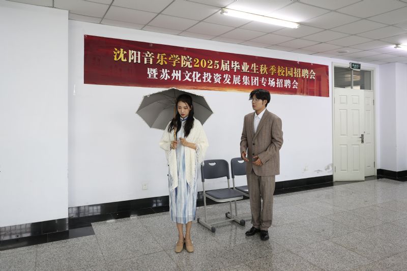 此次专场招聘会共设有舞蹈类、戏剧表演类、演奏类与管理类三个分会场,60余名毕业生分别在各会场进行专业展演,并与用人单位进行面试洽谈。各专业毕业生现场展示了舞蹈表演、戏剧表演、美术作品、器乐演奏和音乐作品,同学们精湛的专业技能和良好的精神风貌受到用人单位的好评。在招聘洽谈的现场,毕业生与用人单位招聘人员积极互动,双方就岗位需求、专业特长等方面进行充分沟通,促进了人才培养和社会需求的有效对接。