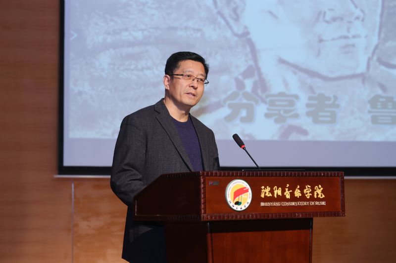 赵恒心在活动中讲话。他对刘妮一行来院开展宣讲活动表示热烈欢迎。他指出,延安革命纪念馆认真贯彻落实习近平总书记重要指示批示精神,大力弘扬伟大建党精神和延安精神,把革命文物融入“大思政课”,将延安故事讲进新时代。今天这支著名的“流动博物馆”走进沈阳音乐学院,为从延安走来的鲁艺传人宣讲延安故事,意义非凡。他强调,作为新时代的鲁艺传人,我们要以鲁艺先辈为榜样,自觉把艺术理想融入党和人民事业中,向经典致敬、与经典对话、向经典看齐,为时代放歌,为人民起舞,努力创作出无愧于时代的优秀作品,培养更多德艺双馨的音乐舞蹈人才,让红色基因焕发出新时代风采,为全面打赢新时代“辽沈战役”,为教育强国、文化强国建设贡献沈音力量。