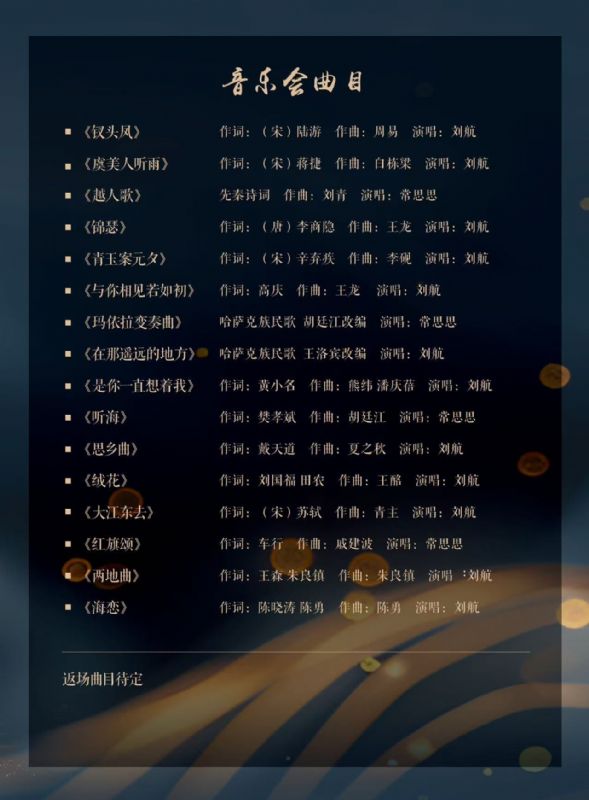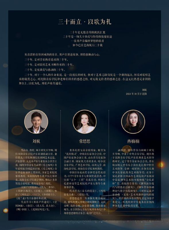 音乐会名称:刘航从艺三十周年独唱音乐会音乐