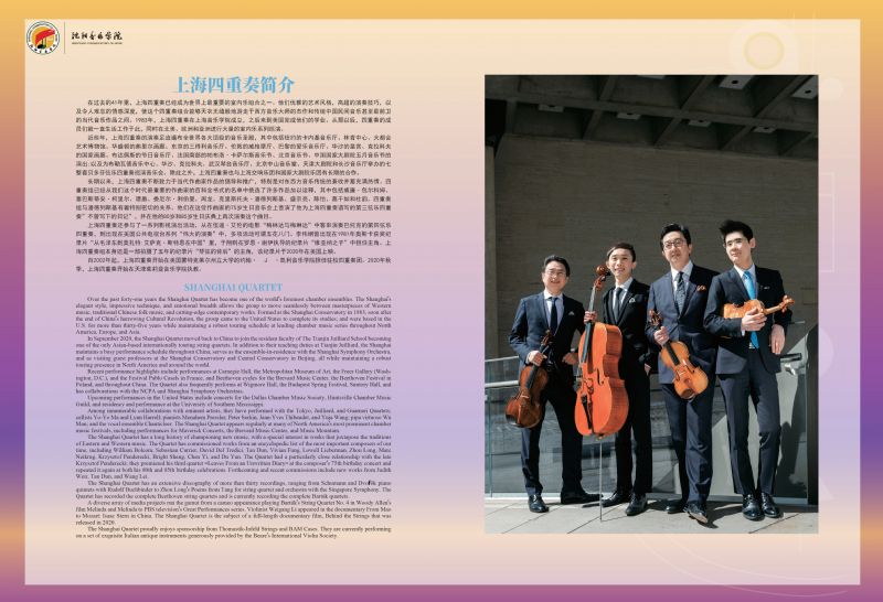 音乐会名称:沈阳音乐学院国际弦乐艺术研讨会暨展演——上海四重奏专场音乐会(沈阳音乐学院“双一流”建设项目)