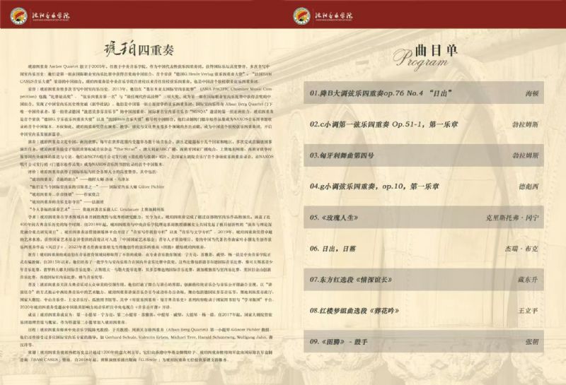 音乐会名称:2024年沈阳音乐学院双一流建设项目《弦乐室内乐表演艺术人才培养》琥珀四重奏讲演音乐会