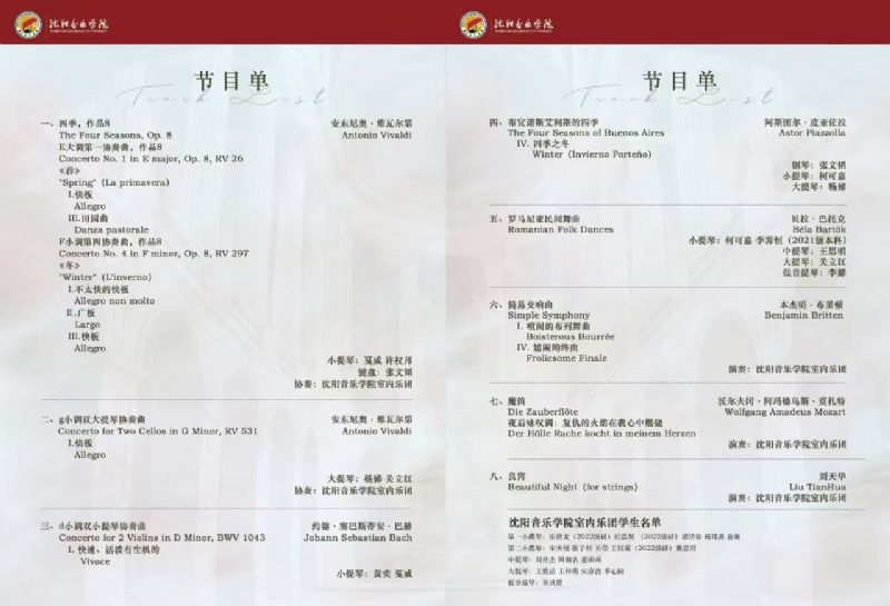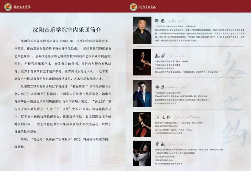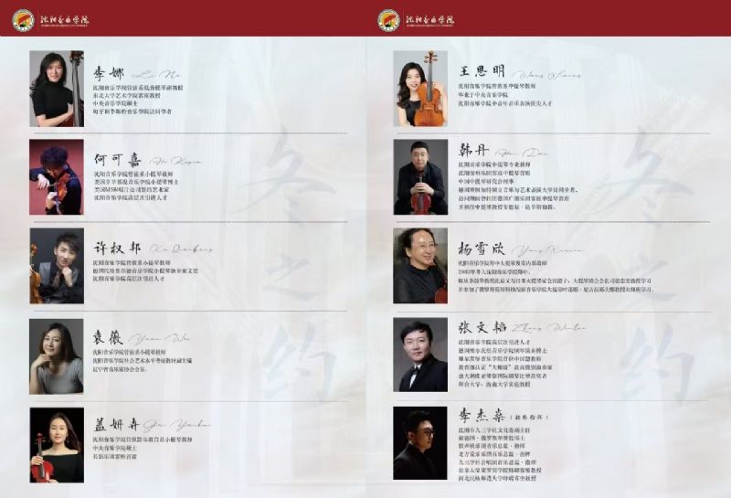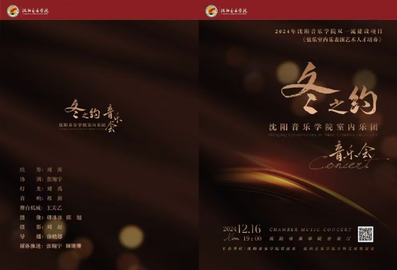 音乐会名称:2024年沈阳音乐学院双一流建设项目《弦乐室内乐表演艺术人才培养》 冬之约 沈阳音乐学院室内乐团音乐会