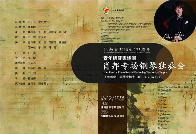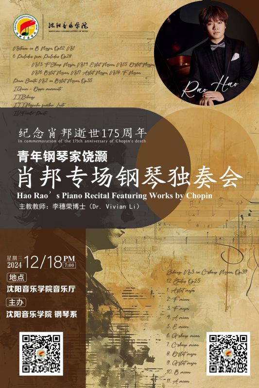 预告 | 青年钢琴家饶灏肖邦专场钢琴独奏音乐会