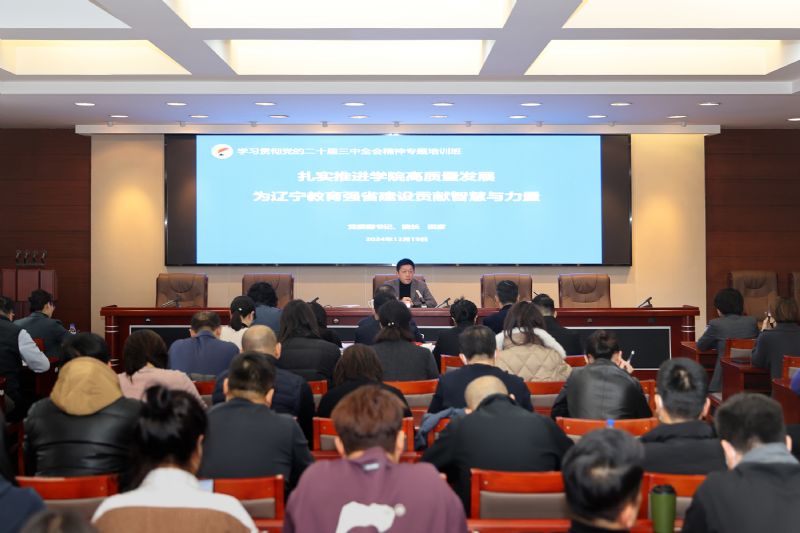 为深入学习贯彻党的二十届三中全会精神和全国教育大会精神,贯彻落实省委十三届八次全会精神和全省教育大会精神,推动“高质量发展大学习大讨论”活动走深走实,12月19日,学院党委副书记、院长田彦以《扎实推进学院高质量发展 为辽宁教育强省建设贡献智慧与力量》为题,作学习贯彻党的二十届三中全会精神专题报告。党委副书记孙旭东,纪委书记、监察专员张健,副院长张策,处级干部参加报告会。报告会由孙旭东主持。