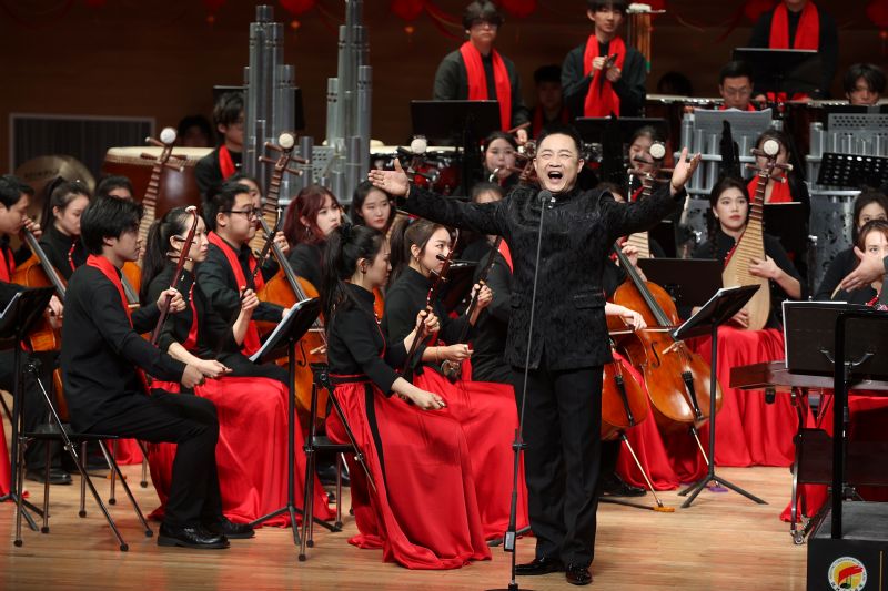 音乐会由沈阳音乐学院北方民族乐团和沈阳音乐学院北方交响乐团倾情演出,我院民族器乐系教师方奇,旅美指挥家、沈阳交响乐团副团长卞思聪两位指挥分别执棒。音乐会荟萃中西音律经典,曲目设置别具匠心、创意独到,既有幽默风趣、极具东北地域风格特色的民间小调《丢戒指》,融入山西民歌元素、深邃优美的歌曲《远情》,藏族民歌音乐元素鲜明,悠扬抒情、荡气回肠的歌曲《天路》;有展现中华民族悠久灿烂音乐文化的民乐合奏《金蛇狂舞》、古筝协奏曲《定风波》;又有脍炙人口、令人耳熟能详的经典管弦乐曲《节日序曲》《爱的致意》《威风堂堂进行曲》《柴可夫斯基第四交响曲》《肖斯塔科维奇第二圆舞曲》,以及寓意新的一年万物复苏的花腔女高音独唱《春之声圆舞曲》。还有近年来创作的民族管弦乐《春华秋实》,借音乐象征从辛勤耕耘到收获满满的历程,寓意新年的美好祝愿。音乐会上还演出了由我院创作的民族管弦乐《盛》,通过展示庆典仪式的庄重、欢庆与典雅,寓意兴旺、繁茂与美好;由我院创作并入选国家艺术基金2024年度资助项目的原创歌曲《初心告诉我》,深切表达了中国共产党人永葆奋斗精神、永怀赤子之心的使命担当。