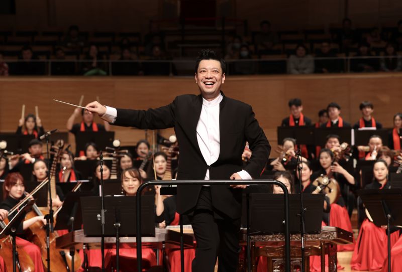 在音乐会的尾声,乐团奏响《我的祖国》,舒展豪迈、荡气回肠的旋律展现了中华大地的辽阔与壮美,展示出新时代中华儿女的自信、自豪和自强。现场观众沉浸在气势恢宏的旋律中,对伟大祖国的热爱之情在丝竹交响中绽放升华。一曲终了,现场观众热情高涨,全场爆发出雷鸣般的掌声。