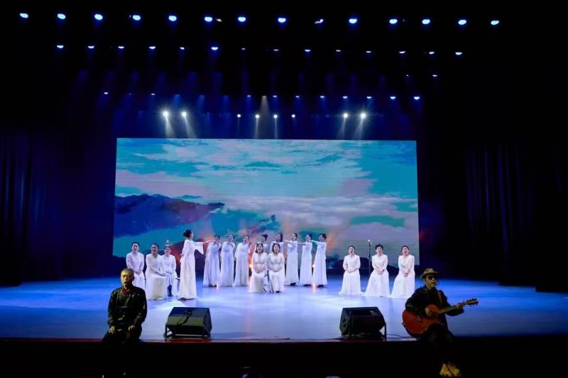日出红山上,文明曙光里。2024年是“红山文化”命名70周年,2025年是红山文化申遗的宣传年。老年大学的学员们在专业学习过程中,走进辽宁省博物馆采风,深刻理解中华文明起源,自创文案,在教师指导下编演了一部以红山文化为主线,纵观中华历史变迁,展示中国古代人文十大雅事的情景剧《红山华韵》。同时学员们参与调研设计,手工制作图案精美的非遗植物蓝染古扇和油纸伞,获得2024辽宁省博物馆首届文创设计大赛优秀奖。小合唱《向云端》等歌曲,生动展现了老年大学学员们像春天的一粒种子,在沈音这片艺术的沃土里生根发芽,在艺术的广阔天地里自由翱翔、绽放光彩。模特秀《汉服之韵》,学员们用优雅传神又充满国风创意的表演带领观众感受沉淀岁月的文化底蕴。古典舞《春雨天香》展示出了中国古典舞国色天香、源远流长的独特韵味。独唱《时间都去哪儿了》,深情诠释了对时间流逝的感慨和对亲情的美好回忆,动情的歌声唤起观众强烈的情感共鸣。吉他弹唱《同一个少年》,表达了学员们对梦想的执着与坚持。即使时间流逝,“银发少年”的初心和热爱从未改变,热烈又充满动感的音乐将整场音乐会推向高潮。