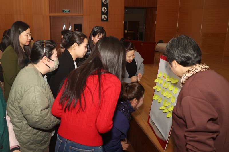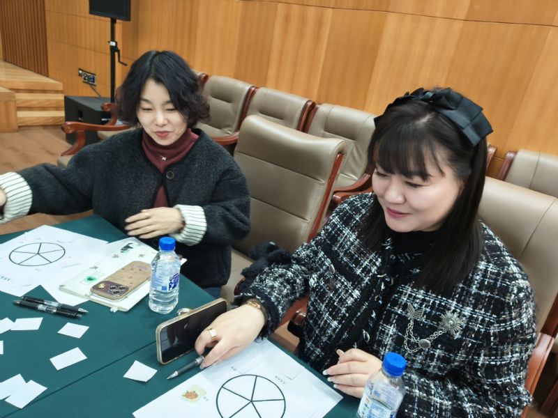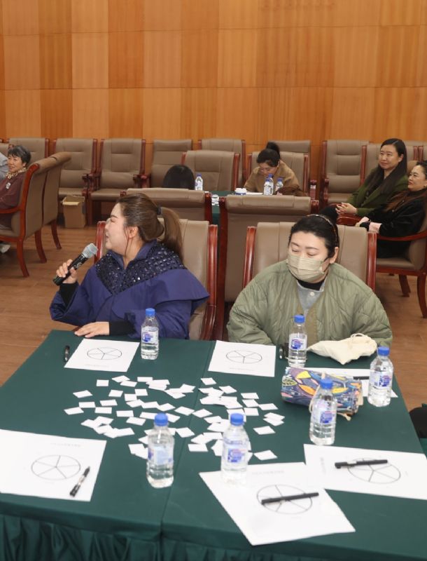 在讨论环节,女教职工们结合自身经历、对生活的感悟踊跃分享活动的感受。随着话题的深入,有人以幽默化解职场女性的日常压力,引得现场一片欢笑朗朗;有人诉说身为妈妈为女儿倾情付出的心路历程,动情之处眼含泪光;有人感慨母亲对自己无私的爱与奉献,感叹尽孝须趁早......她们的手指时而随着笑声在桌面上轻叩出欢快节奏,又会在某个共情瞬间不约而同地伸手触碰讲述者的肩头,大家在温暖的氛围中与同伴共创智慧,汲取能量,唤醒内在的力量,收获了科学评估生活平衡度的心理学工具、直面多重角色冲突的认知升级和一份专属自我的“平衡行动清单”。