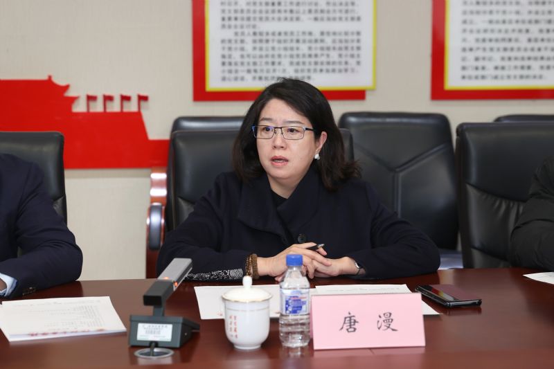 唐漫教授在第一组汇报会上与各职能教辅部门负责人交流