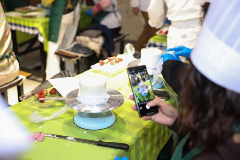 此次活动特邀请皇后西斯汀蛋糕店精心准备了烘焙所需的新鲜食材,并由专业烘焙师对教职工现场讲解蛋糕制作技巧,从奶油涂抹、水果装饰到造型设计,逐步示范操作流程。女教职工们兴致盎然,大家仔细倾听,全情投入,认真制作,纷纷化身“烘焙达人”,在烘焙师的指导下发挥创意,一个个造型精美、独具创意的蛋糕新鲜出炉,活动现场洋溢着欢声笑语,大家共同享受着烘焙的过程,相互欣赏各自的创作成果,并与自己甜蜜的“作品”拍照留念,现场弥漫着快乐和幸福的气息。