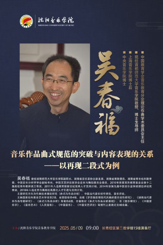 下一篇:礼赞劳动美 奋进新征程——沈阳音乐学院2025“春秋艺韵”春季演出季之锦州市职工“五一”国际劳动节交响音乐会成功举行