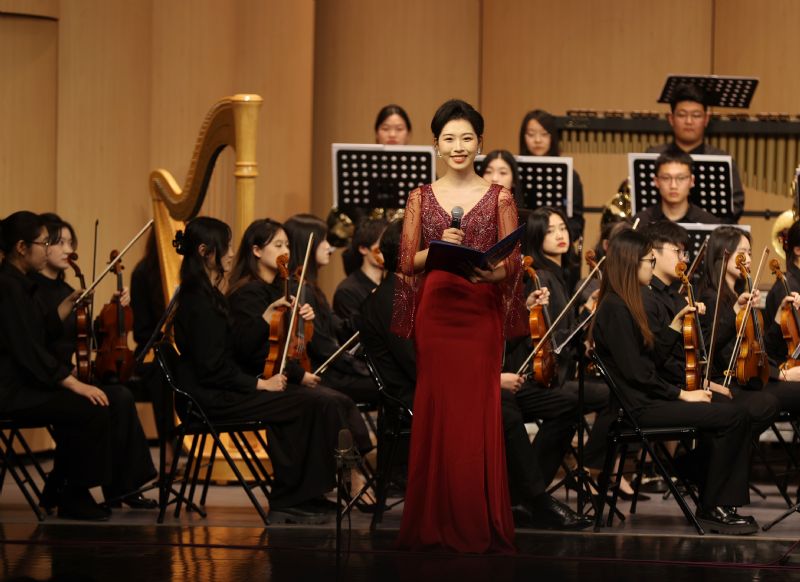 我院北方交响乐团还演绎了爱德华·埃尔加[英]《爱的致意》、约翰内斯·勃拉姆斯[德]《匈牙利舞曲第五号》、贝多芬《c小调第五交响曲“命运”》第四乐章、《太阳出来喜洋洋》《花好月圆》《丰收》等多首中西经典交响乐,西方交响的严谨结构与中国旋律的诗意流淌碰撞出奇妙的火花,从古典主义的理性到东方美学的写意,每个音符都在诉说人类共同的情感密码。