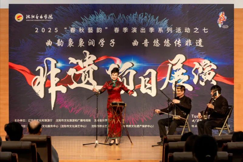 4月29日,“曲韵袅袅润学子 曲音悠悠传非遗”非遗项目展演在沈阳音乐学院室内乐演奏厅成功举办。展演由来自沈阳市群众艺术馆(沈阳市非物质文化遗产保护中心)、沈阳京剧院和沈阳市沈北新区文化馆的演员与沈阳音乐学院音乐学系的学子们为观众联袂呈献。台上是精彩的节目展演,台下有可互动体验的非遗技艺工作坊,通过多维度互动相结合的形式,让观众能够近距离地感受到辽宁非遗文化的独特魅力。此次展演遴选出七个节目,囊括了说唱、戏曲、相声、戏法、民族器乐与舞蹈六大门类,个个绝妙让人直呼过瘾,充分展现了非遗在新时代的创造性转化与创新性发展。