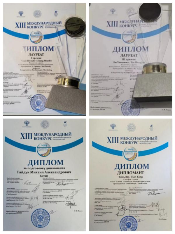 我校学生张舜博、刘航君、田阳、冯治澄在俄罗斯文化部举办的“第十三届符拉迪沃斯托克国际音乐比赛”中获得优异成绩