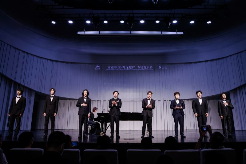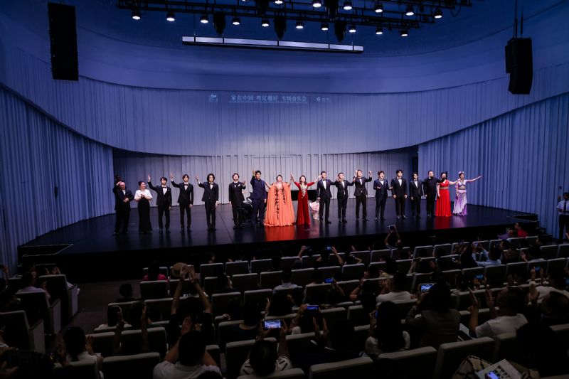 音乐会以极具东北地域风格特色的民歌《串门儿》拉开帷幕,充满雪域豪情的《天路》与时代赞歌《灯火里的中国》交相辉映。歌剧咏叹调《为艺术,为爱情》传递出经典歌剧的永恒之美;苗族舞蹈《花儿》展现了苗族儿女的热情奔放与灵动俏皮,仿佛一朵朵娇艳欲滴的花儿,争奇斗艳,以绚烂的姿态向世界诉说着苗族文化的独特魅力;箫独奏《大漠孤烟》以苍凉悠远的音色描绘出塞外风光的壮阔意境,刻画了中华风骨,令人回味无穷。男声小合唱《故乡的云》表达了对故乡的深切思念与归家的渴望;西洋乐器长笛和单簧管与钢琴合作,演绎了新疆民歌《花儿为什么这样红》、蒙古族歌曲《鸿雁》这两首脍炙人口的歌曲。哈萨克族民歌《手挽手》、广东童谣《月光光》、维吾尔族民歌《一杯美酒》,以及意大利拿坡里民歌联唱《我的太阳》《桑塔露琪亚》《缆车》,跨越山海,共舞世界韵律,令现场观众沉醉其中。在音乐会尾声,全体演员与全场观众共同唱响“我和我的祖国,一刻也不能分割”,用歌声献礼山河丰饶。在台上台下的共同合唱中,音乐会落下帷幕,现场观众热情高涨,全场爆发出雷鸣般的掌声。这场跨越千里的音乐对话,不仅让观众领略了粤辽两地的文化魅力,更以艺术的形式诠释了“家在中国”的深刻内涵——跨越地域、超越民族,音乐与情感始终将我们紧密相连。
