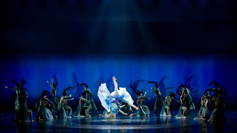 红山文化被誉为“中华文明的第一缕曙光”,舞剧引领观众回到五千年前的辽河流域,通过“玉碎”“求援”“祈雨”“洪殇”四个篇章讲述了红山古国一场寻玉、制玉、玉成、国建的奇瑰故事。舞台上运用全息投影、AR增强现实技术、智能灯光等现代科技手段,让千年红山的神秘传说在科技与艺术的交融中翩然苏醒。