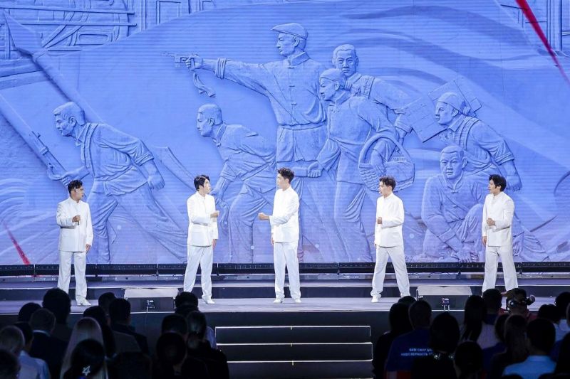 本次演出是此次共同纪念活动的中国篇,演出分为“伟大的胜利”“童年的梦想”“和平与幸福”“共创美好未来”四个篇章,演唱曲目包括中国人民抗日战争、苏联卫国战争时期的歌曲和当代歌曲。《长城谣》《游击队歌》《胜利节》……在第一篇章“伟大的胜利”中,中俄青少年共同演绎抗击法西斯主义和军国主义的歌曲,再现两国人民并肩作战、相互支援、用鲜血和生命凝结深厚情谊的历史,表达中俄青少年对伟大胜利的崇高敬意。