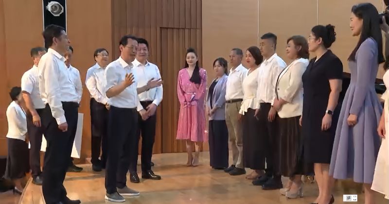 调研组在校史馆详细了解学院历史沿革、发展建设、艺术人才培养、社会服务以及文化传承与创新等情况,观看了馆内珍藏的历史照片、文献实物和多媒体展陈。青年教师关贺元在馆内相应专区现场配合讲解,深情演唱沈阳音乐学院首任院长李劫夫创作的歌曲《革命人永远是年轻》,并与在场学生代表共唱由老院长秦咏诚创作的歌曲《我和我的祖国》,展示了学院师生良好的精神风貌与专业素养。调研组还观摩了由学院师生组成的“红色文艺轻骑兵”排练情况。陈绿平对学院传承鲁艺精神,赓续红色血脉,潜心立德树人,服务新时代辽宁全面振兴等方面取得的可喜成果表示肯定,对学院打造的“红色文艺轻骑兵”服务社会品牌给予了高度评价。