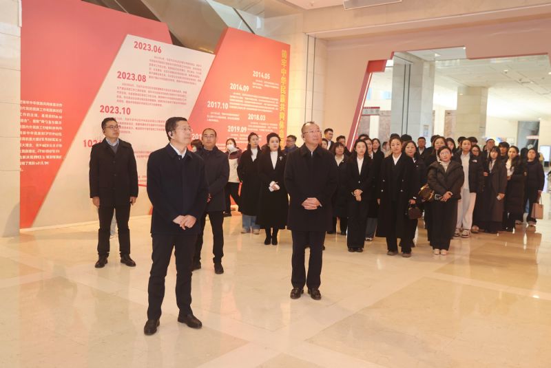 学院领导与师生在展馆内参观