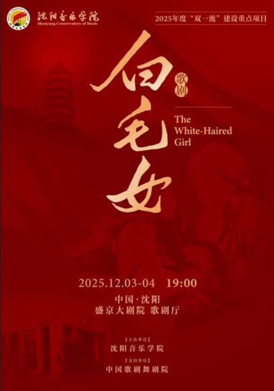 12月3日至4日,由沈阳音乐学院演出,中国歌剧舞剧院支持的民族歌剧《白毛女》将在盛京大剧院拉开帷幕;