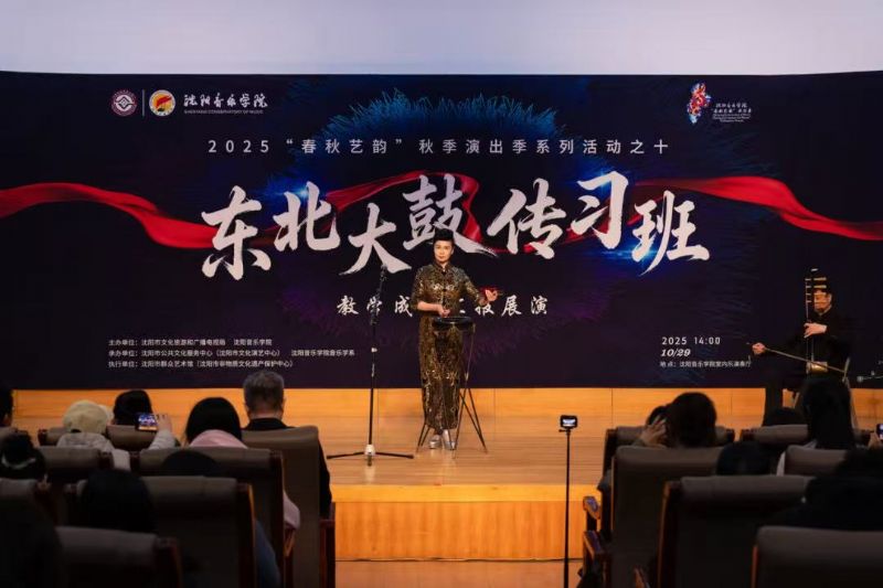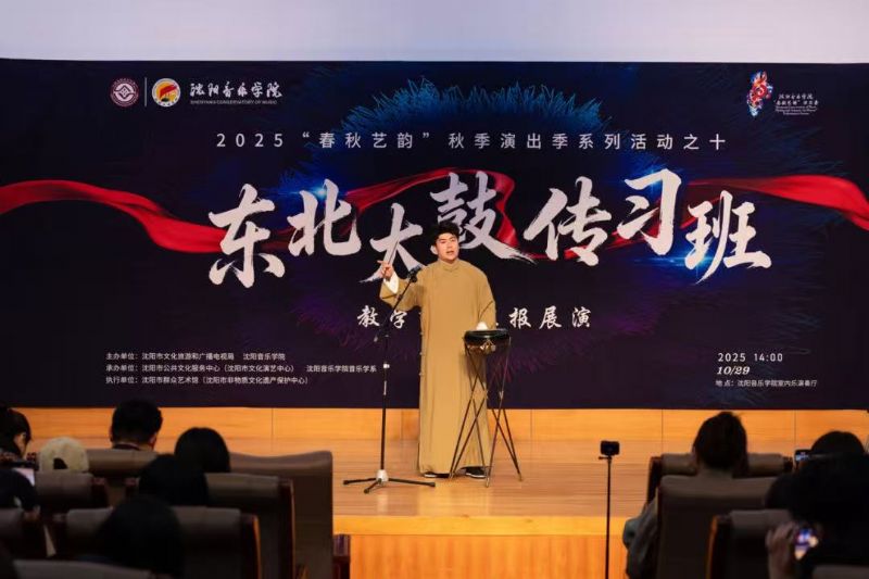东北大鼓传习班于今年8月1日开班,坚持“守正创新、薪火相传”的理念,采用理论与实践相结合、传统与现代相融合的教学模式,让学员们在系统学习鼓书技艺、研习传统唱腔的同时,深入理解东北大鼓的文化内涵和艺术精神。此次教学成果展演汇聚了多部东北大鼓的经典之作与全新力作,将传统文化的精髓与现代舞台艺术巧妙融合,生动展现了东北大鼓独特的艺术魅力。不仅让东北大鼓这一传统曲艺在当代舞台焕发新生,更搭建起传统文化与当代青年学子的对话桥梁,生动展现了这一非遗项目在新时代的可持续发展,为推动东北大鼓艺术在新时代的传承与可持续发展注入了新的活力与动力。