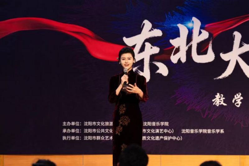 展演伊始,刘小龙为本次展演致辞。他指出,东北大鼓作为我国传统曲艺的杰出代表,以其独特的艺术魅力和深厚的文化内涵,成为东北人民精神文化生活中不可或缺的重要组成部分。沈阳音乐学院作为“鲁艺”的传承者,肩负着弘扬民族精神、传承民族文化的使命。多年来,学院深耕东北地域文化沃土,致力于民族民间音乐的研究、保护与教学实践。此次展演,不仅是对传习班学习成果的集中展示,也是东北大鼓在新时代传承发展的生动写照。学院将在未来持续深化与沈阳市文化旅游和广播电视局等相关部门的合作,进一步推动东北大鼓的保护与传承,不断完善非遗传承体系,打造更多具有影响力的文化品牌和艺术活动。