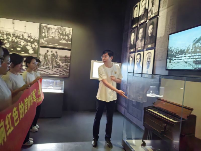 参观活动中,音乐科技系党总支教师党员、键盘乐器修造教研室主任魏新宇副教授,在博物馆第三单元展厅为党员师生作了题为《用生命奏响红色的信仰乐章》情景微党课。